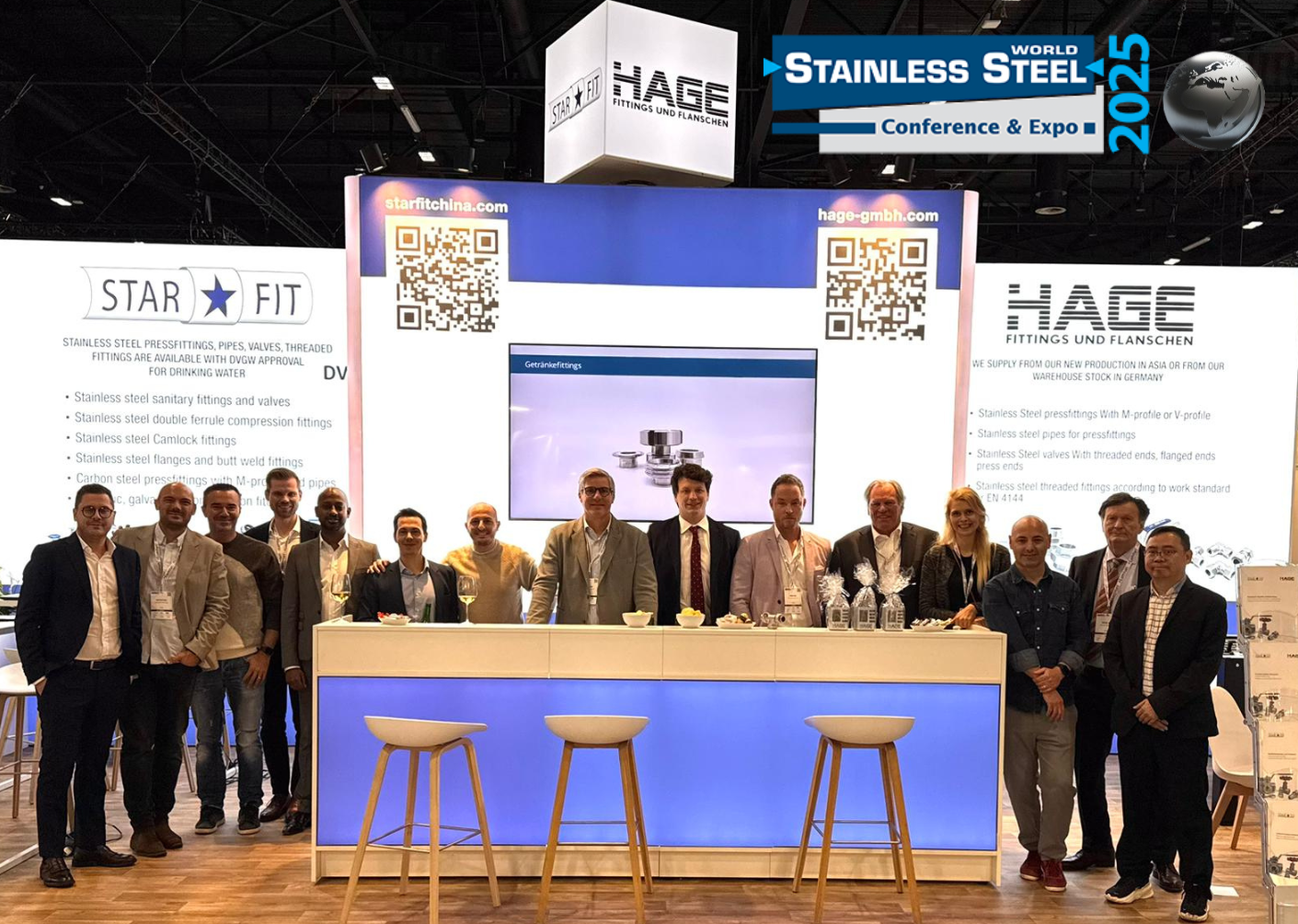 From November 18 to 20, 2025, Hage Fittings und Flansche GmbH and STARFIT China Ltd. were represented with a joint stand at Stainless Steel World in Maastricht. Three days of trade fair full of intensive discussions, new contacts, and in-depth insights into current market trends are now behind us.